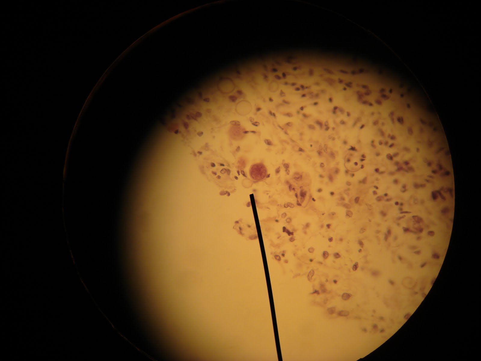 Histoplasma capsulation in brain tissue (Gomoro stain)
